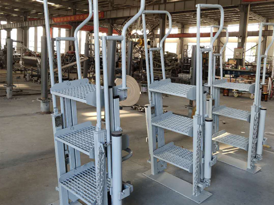 登船梯是現代大型油船碼頭油船在停靠碼頭作業(yè)過程中,裝卸作業(yè)人員和船員安全順利上下船舶的裝置。傳統的登船裝置是依靠由船自身攜帶的舷梯來完成。